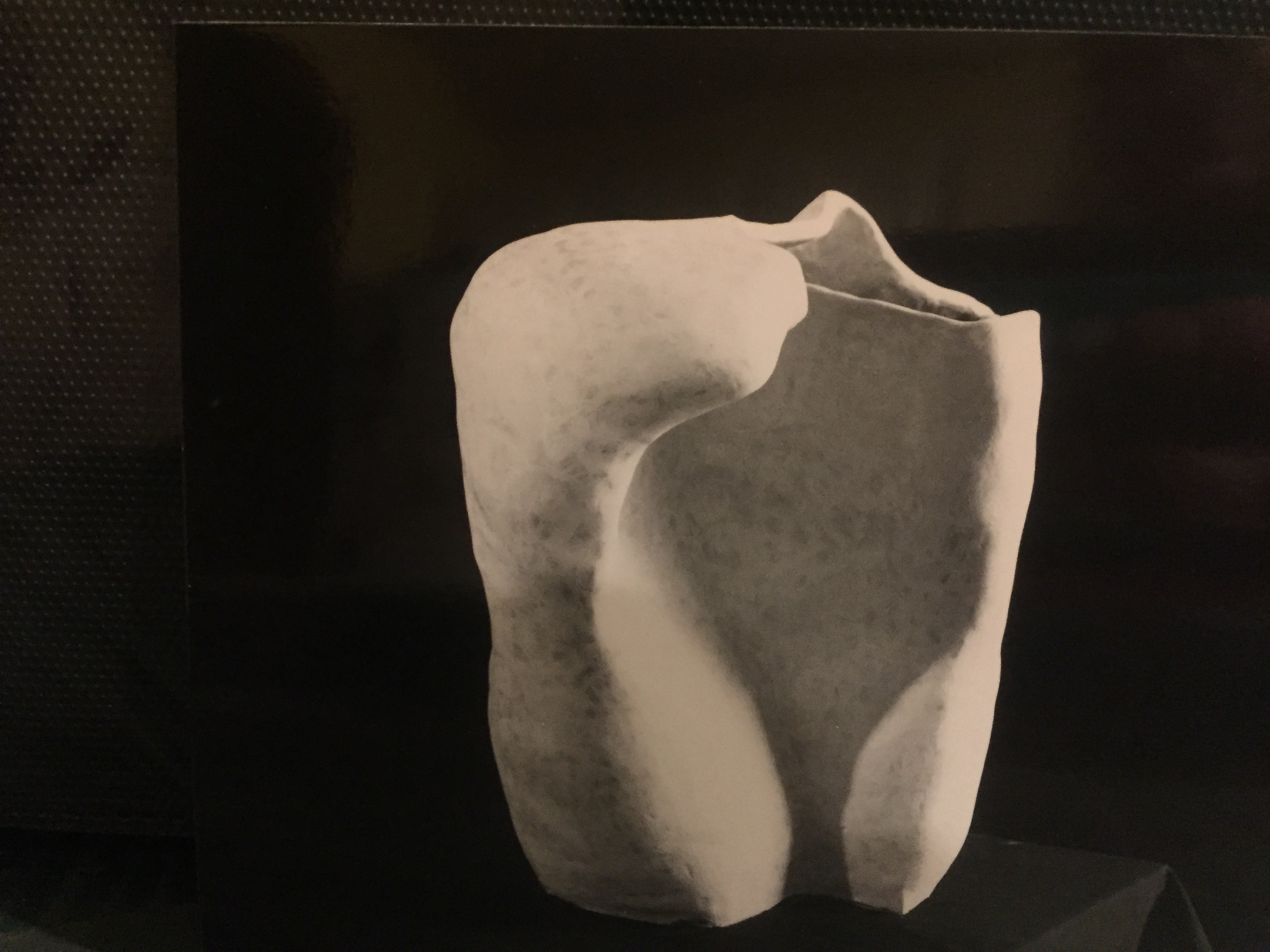 The top 3 photos are of my first thrown-slab, wedged coil technique sculpture called “See My Sides.” The subtle organic form suggests elements of a shoulder or a back. I started with a shape for the bottom that I then repeated in the middle sculpture on the bottom row. Each of these sculptures showed me which direction to go through the connection with the clay. These porcelain sculptures are all about 24″ tall.